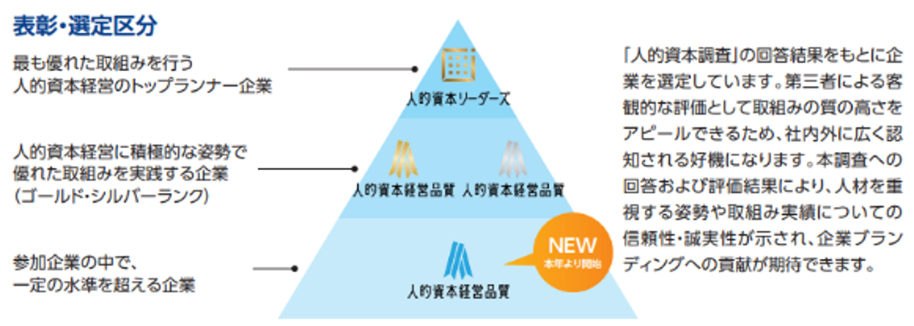 アンケート調査の結果、一定水準以上のレベルにある企業を「人的資本経営品質2025」に選定します。選定企業の中でも特にレベルが高い企業を「人的資本経営品質2025ゴールド」、次いでレベルが高い企業を「人的資本経営品質2025シルバー」として選定し、下記のロゴを付与します。